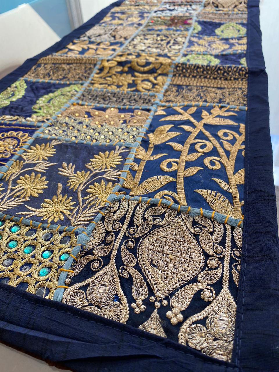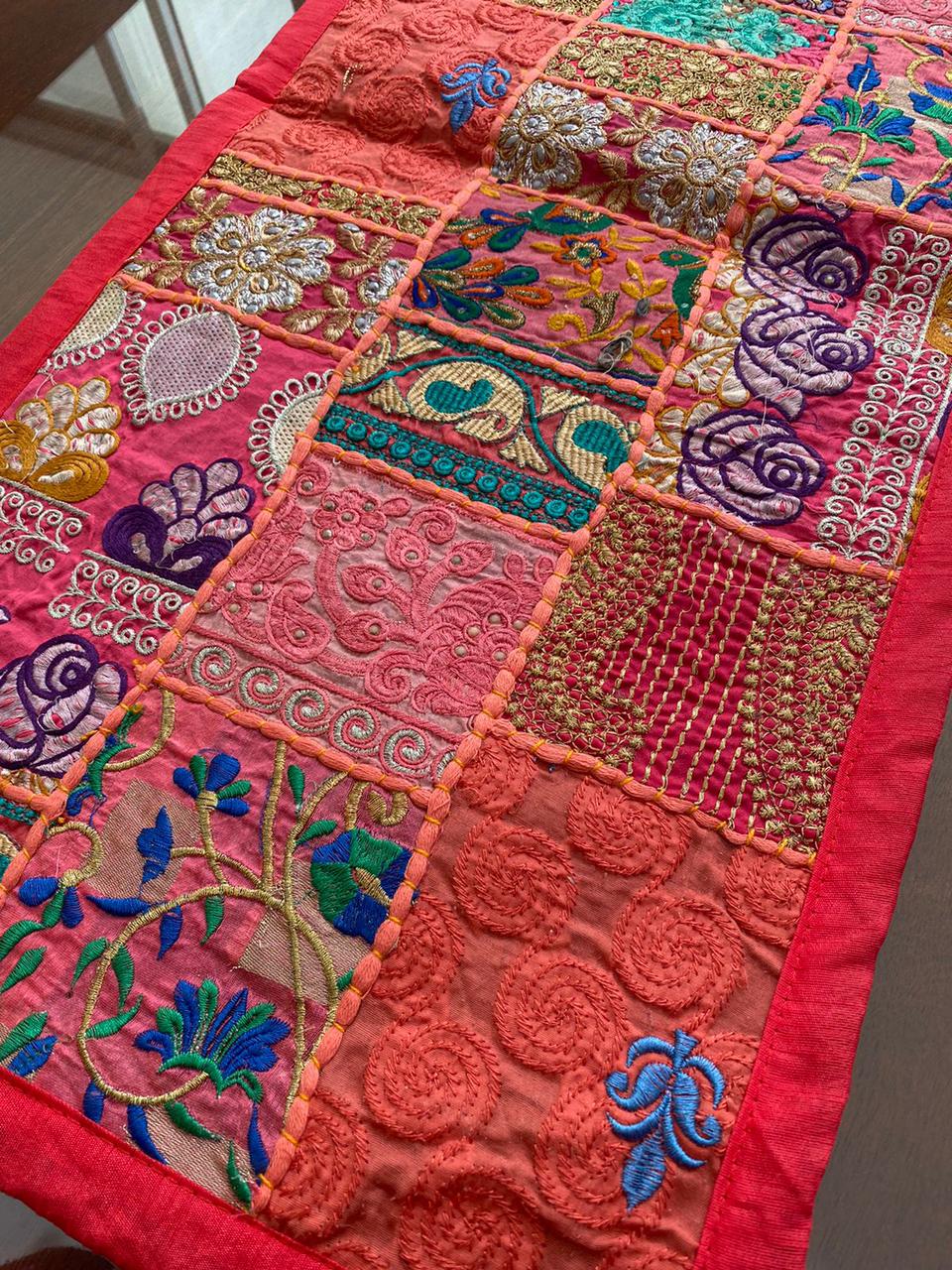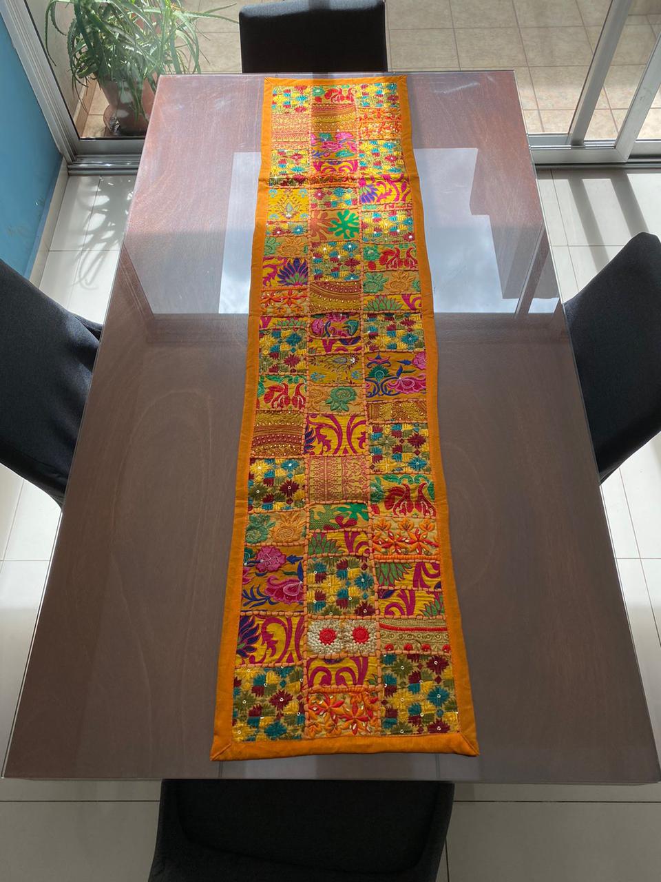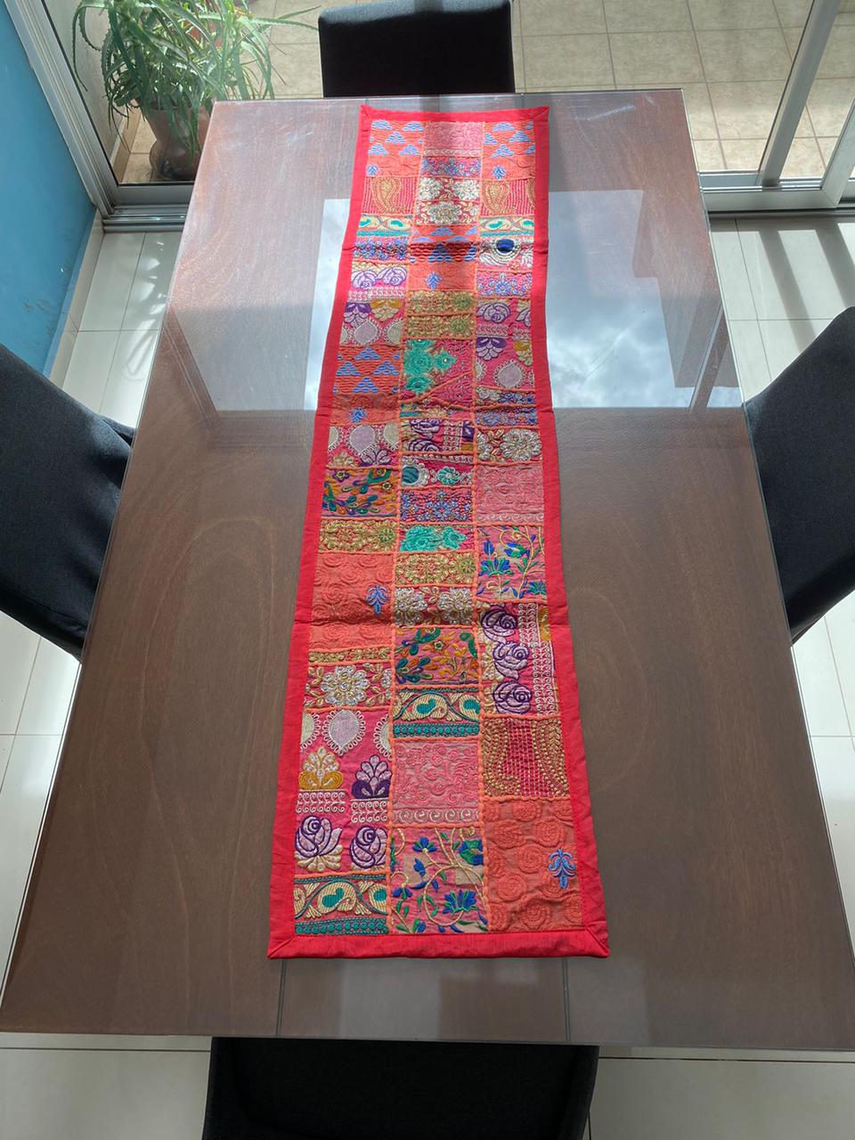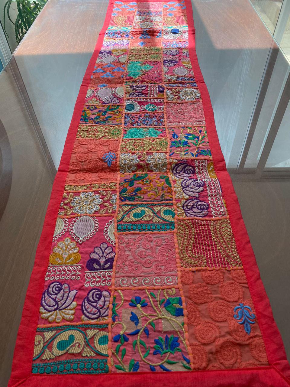 Estos camino de mesa están hechos de parches de tela vintage y bellamente fabricados por expertos artesanos en Rajasthan, India. Disponible en varios colores vibrantes e impresionantes. Ten en cuenta que como estos Caminos de mesa están hechos a mano y hechos de parches de tela vintage, el camino de mesa será enviado en el mismo color principal, pero los parches serán diferentes.