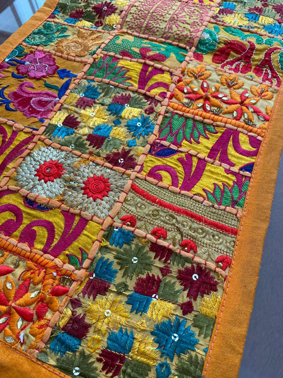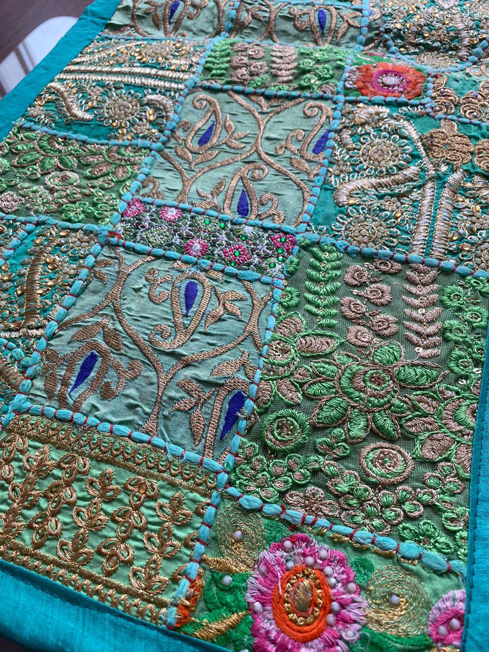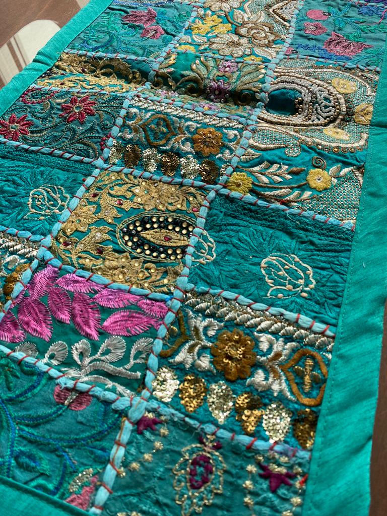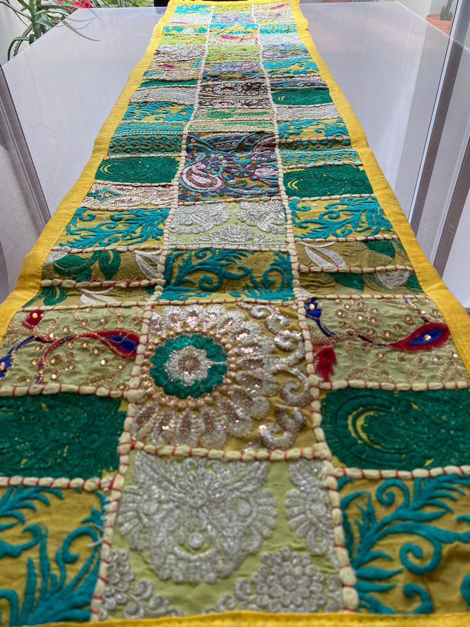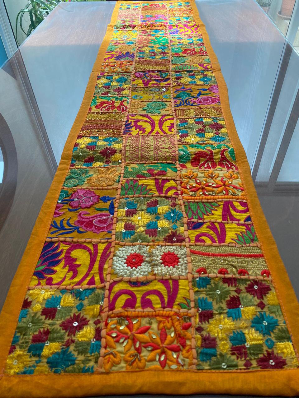 Estos camino de mesa están hechos de parches de tela vintage y bellamente fabricados por expertos artesanos en Rajasthan, India. Disponible en varios colores vibrantes e impresionantes. Ten en cuenta que como estos Caminos de mesa están hechos a mano y hechos de parches de tela vintage, el camino de mesa será enviado en el mismo color principal, pero los parches serán diferentes.