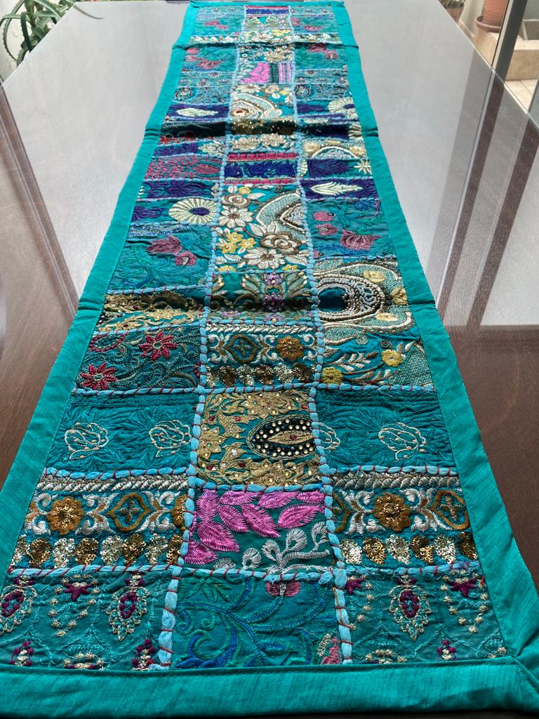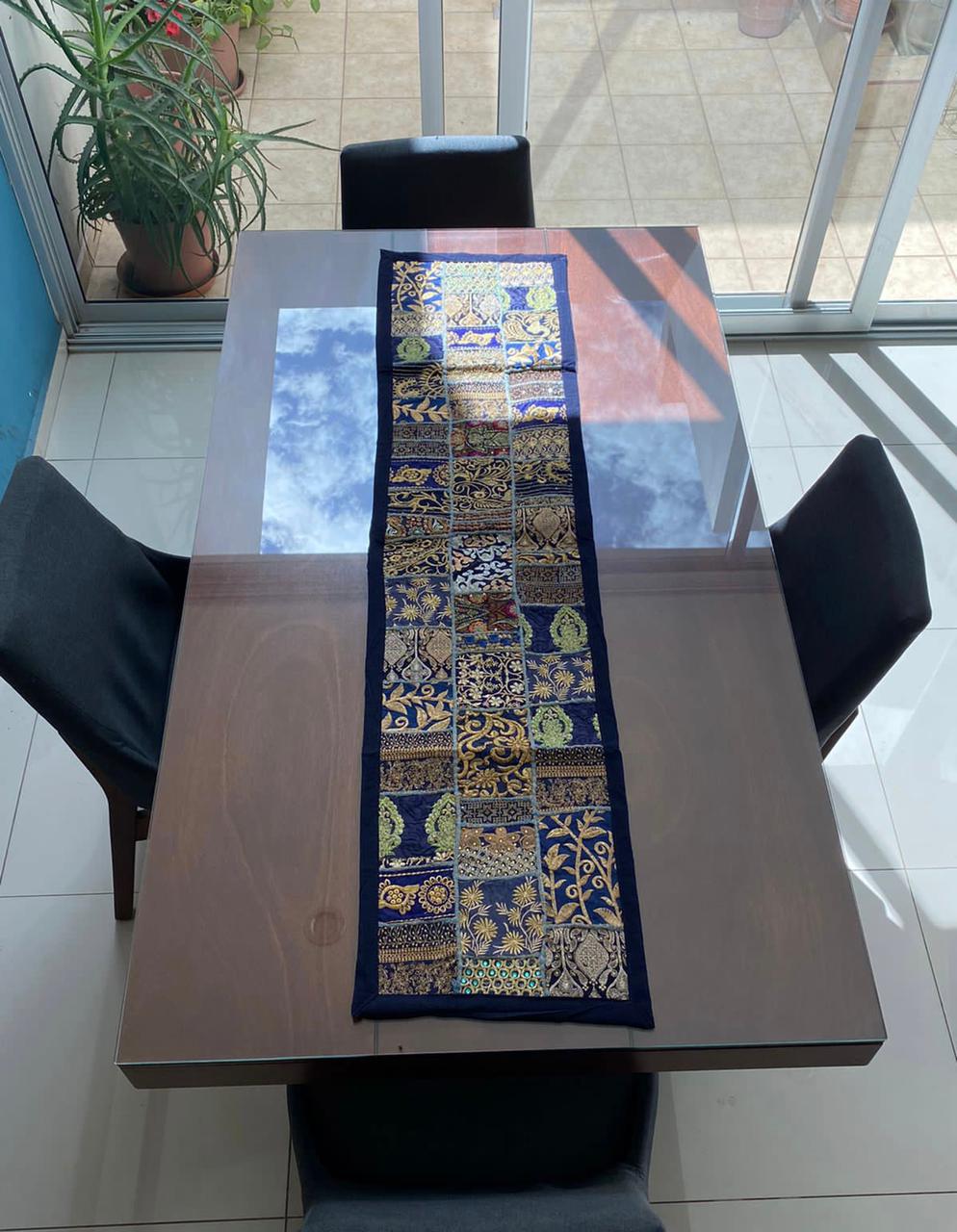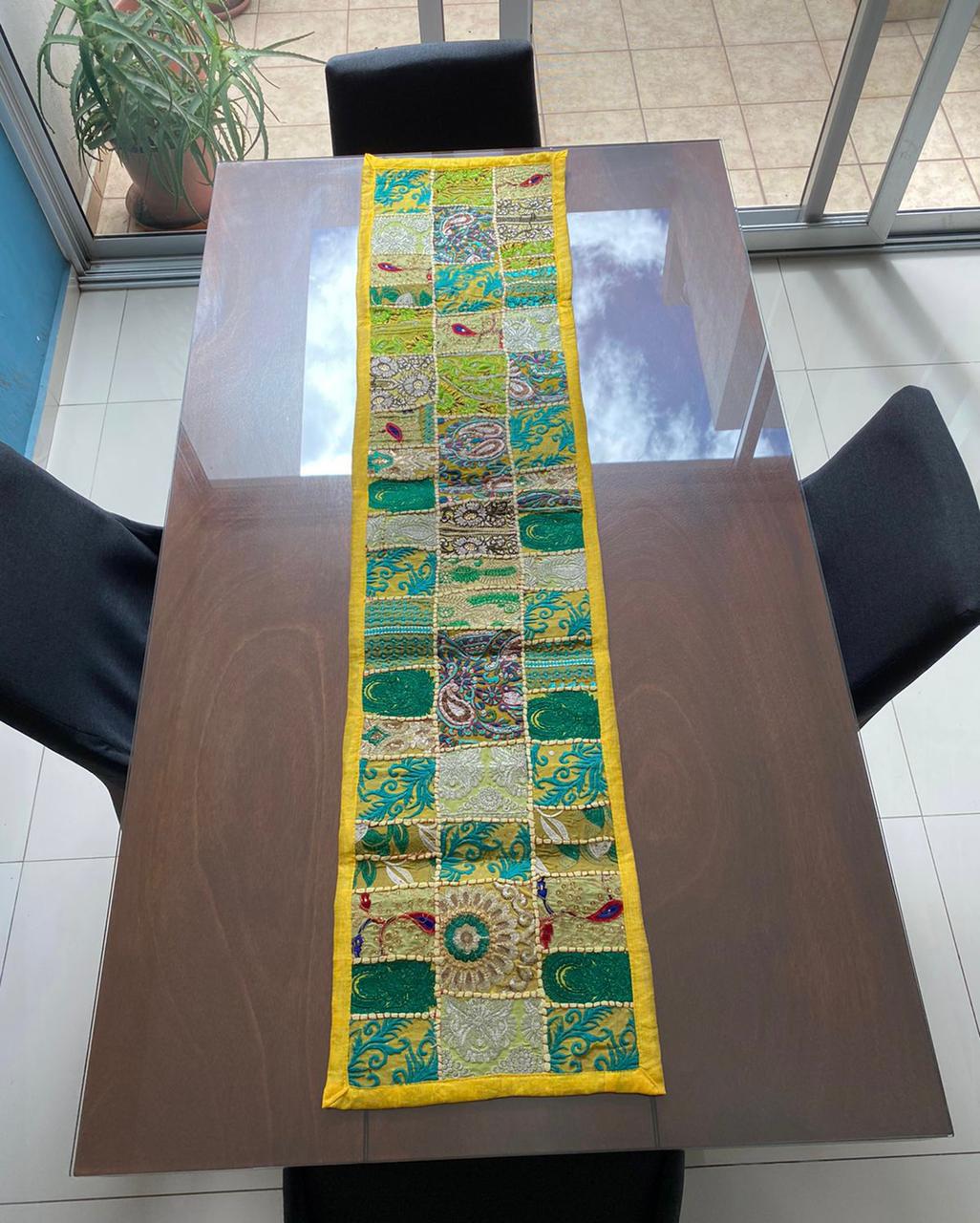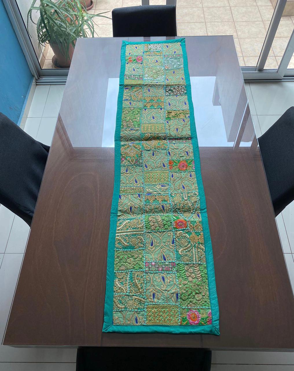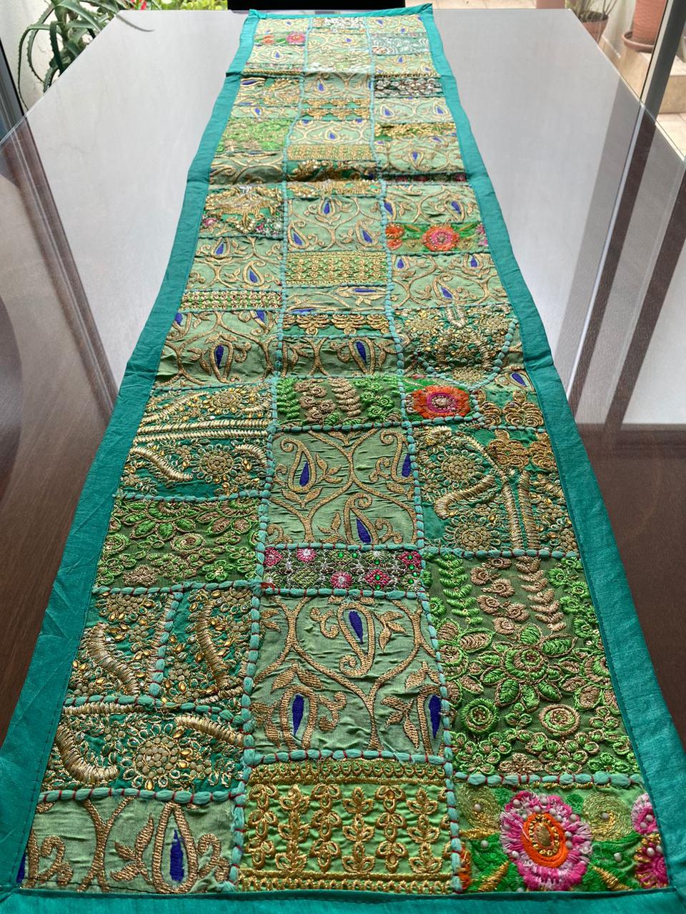 Camino de mesa Hindues hechos a mano decorativo tradicional hindú estilo vintage con patchwork 150 x 40 cm rejuvenece tu hogar con camino de mesa hechos a mano de la India.