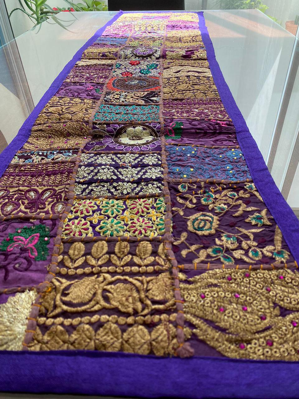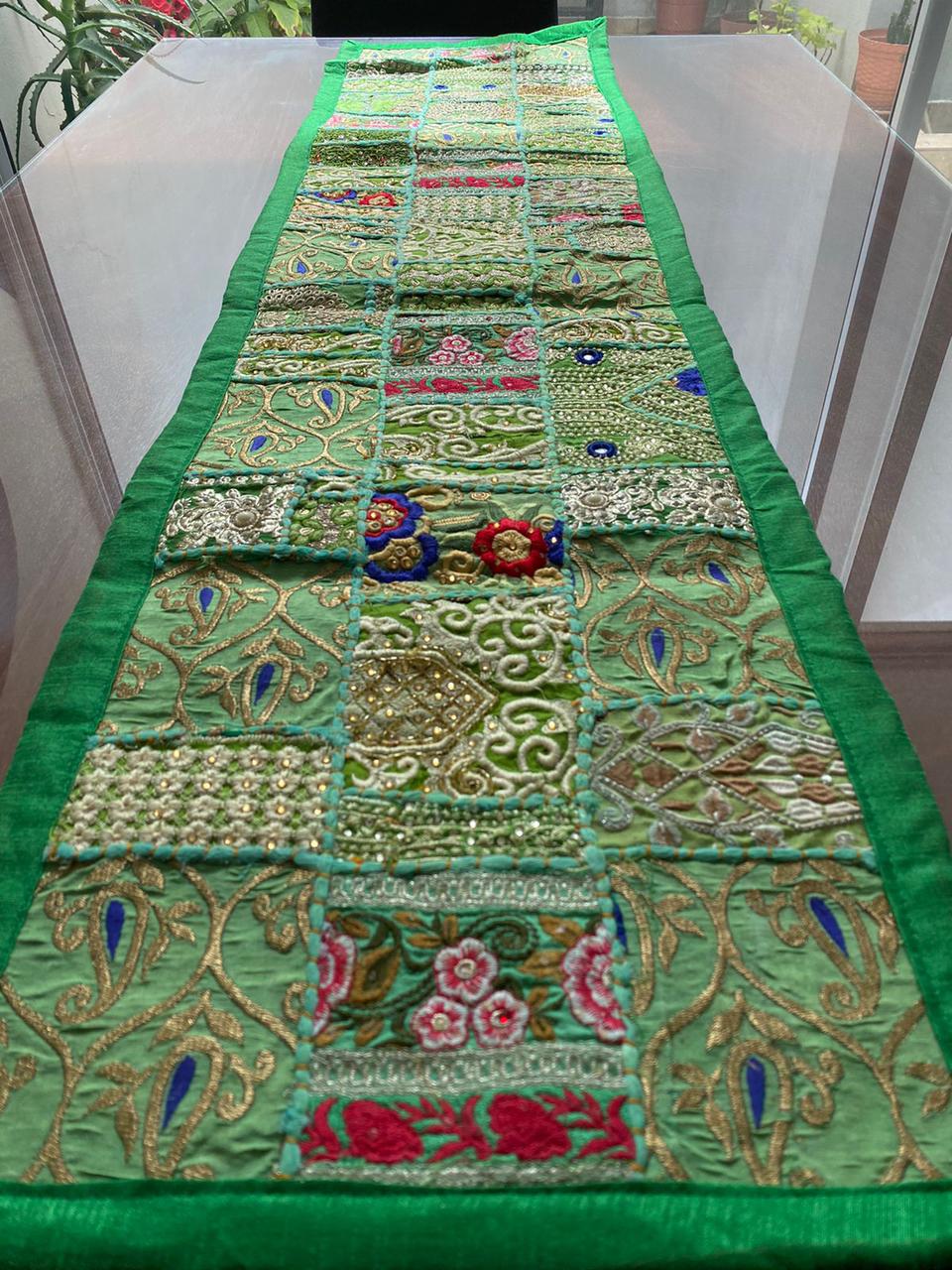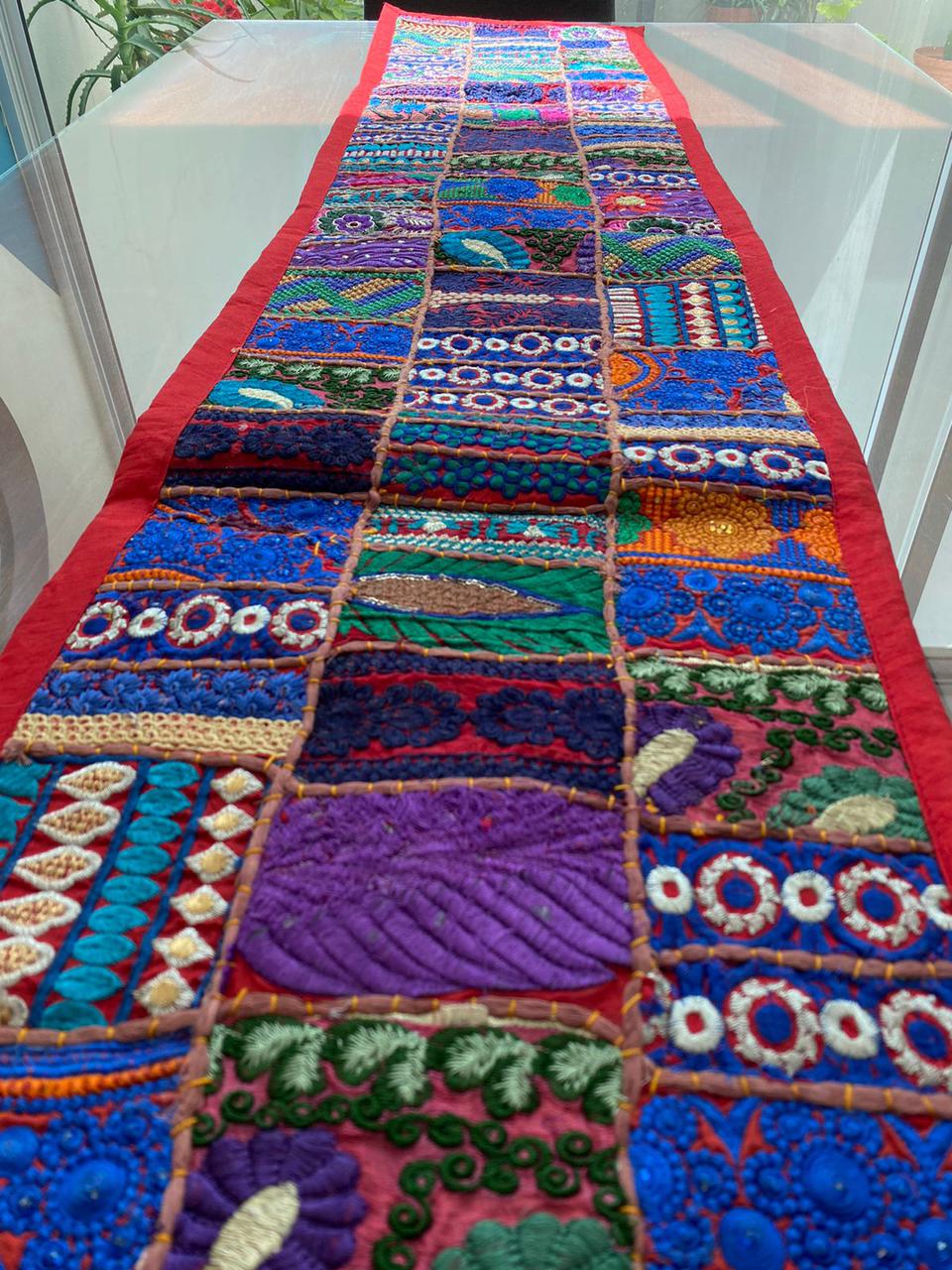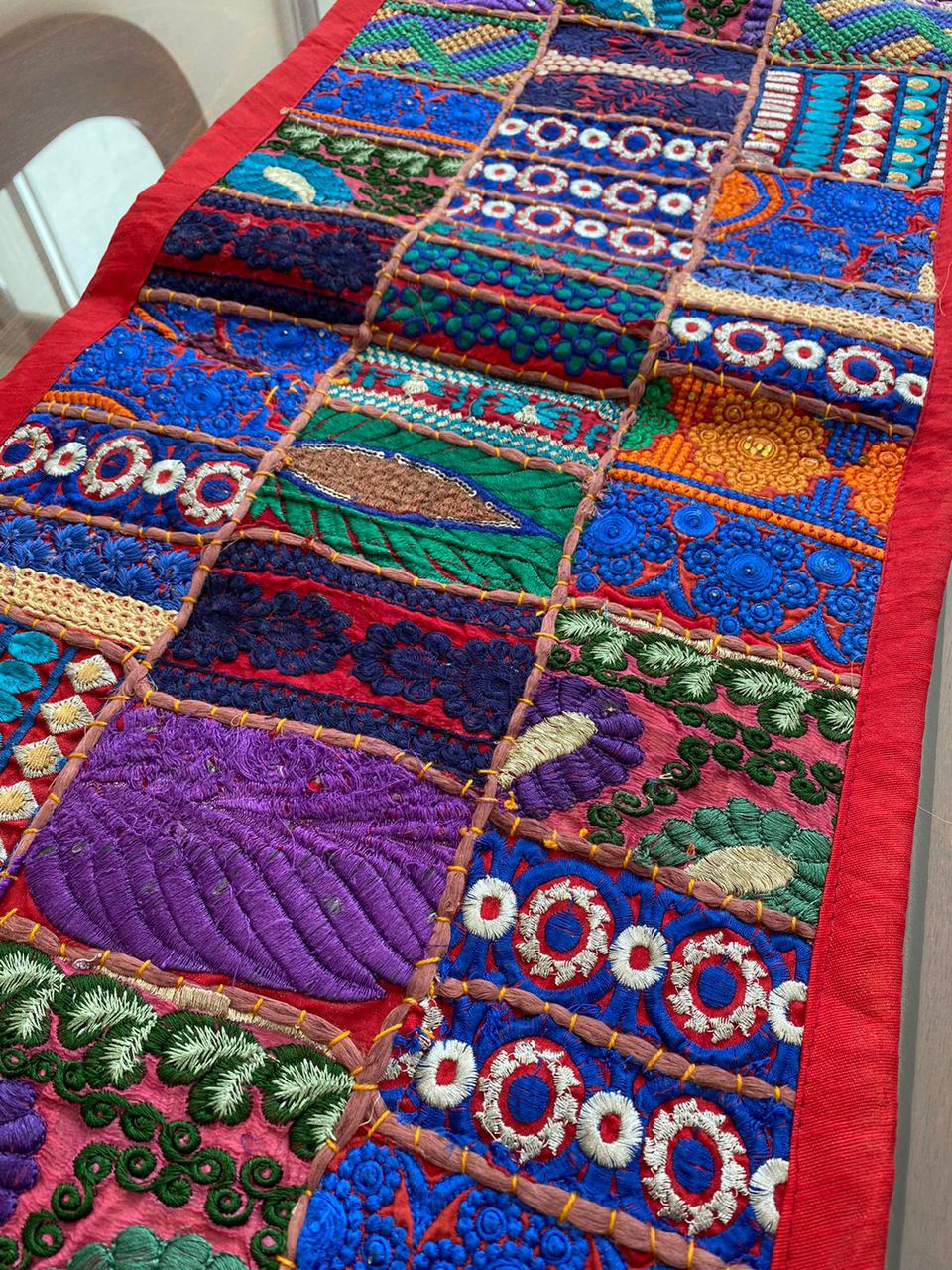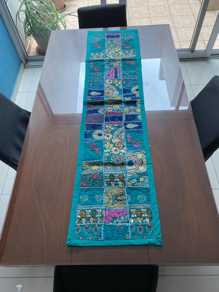 Camino de mesa Hindues hechos a mano decorativo tradicional hindú estilo vintage con patchwork 150 x 40 cm rejuvenece tu hogar con camino de mesa hechos a mano de la India.