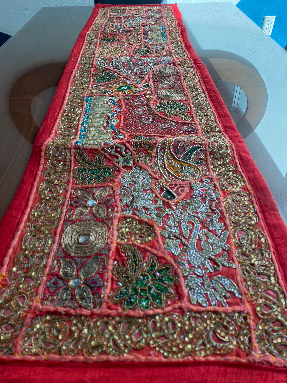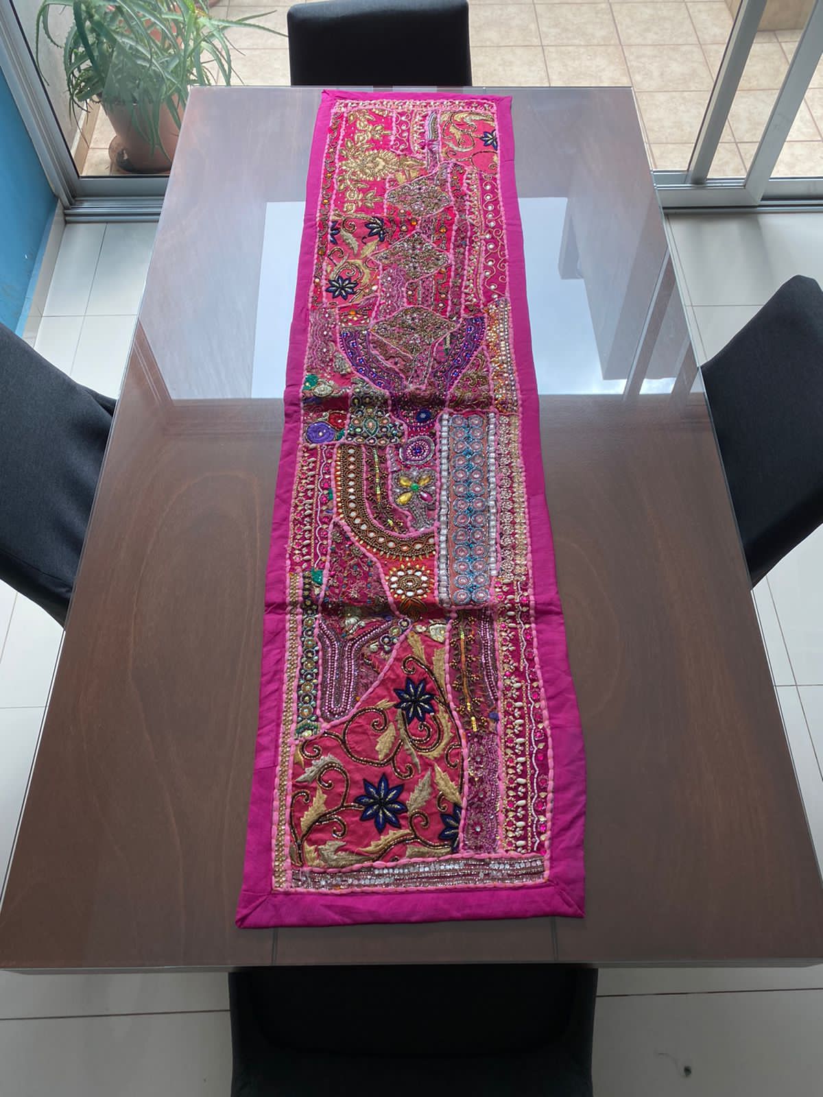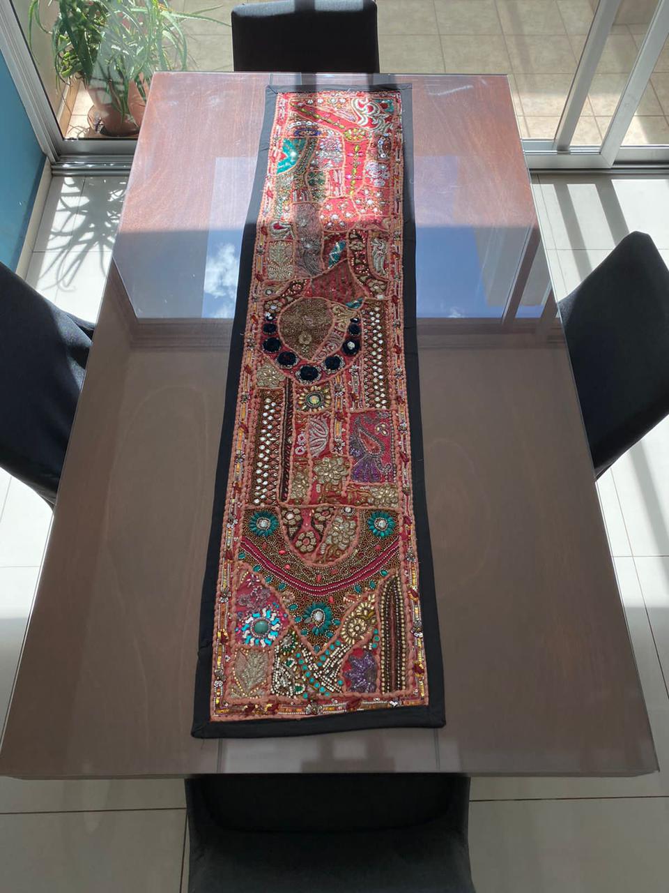 Estos camino de mesa están hechos de parches de tela vintage y bellamente fabricados por expertos artesanos en Rajasthan, India. Disponible en varios colores vibrantes e impresionantes. Ten en cuenta que como estos Caminos de mesa están hechos a mano y hechos de parches de tela vintage, el camino de mesa será enviado en el mismo color principal, pero los parches serán diferentes.