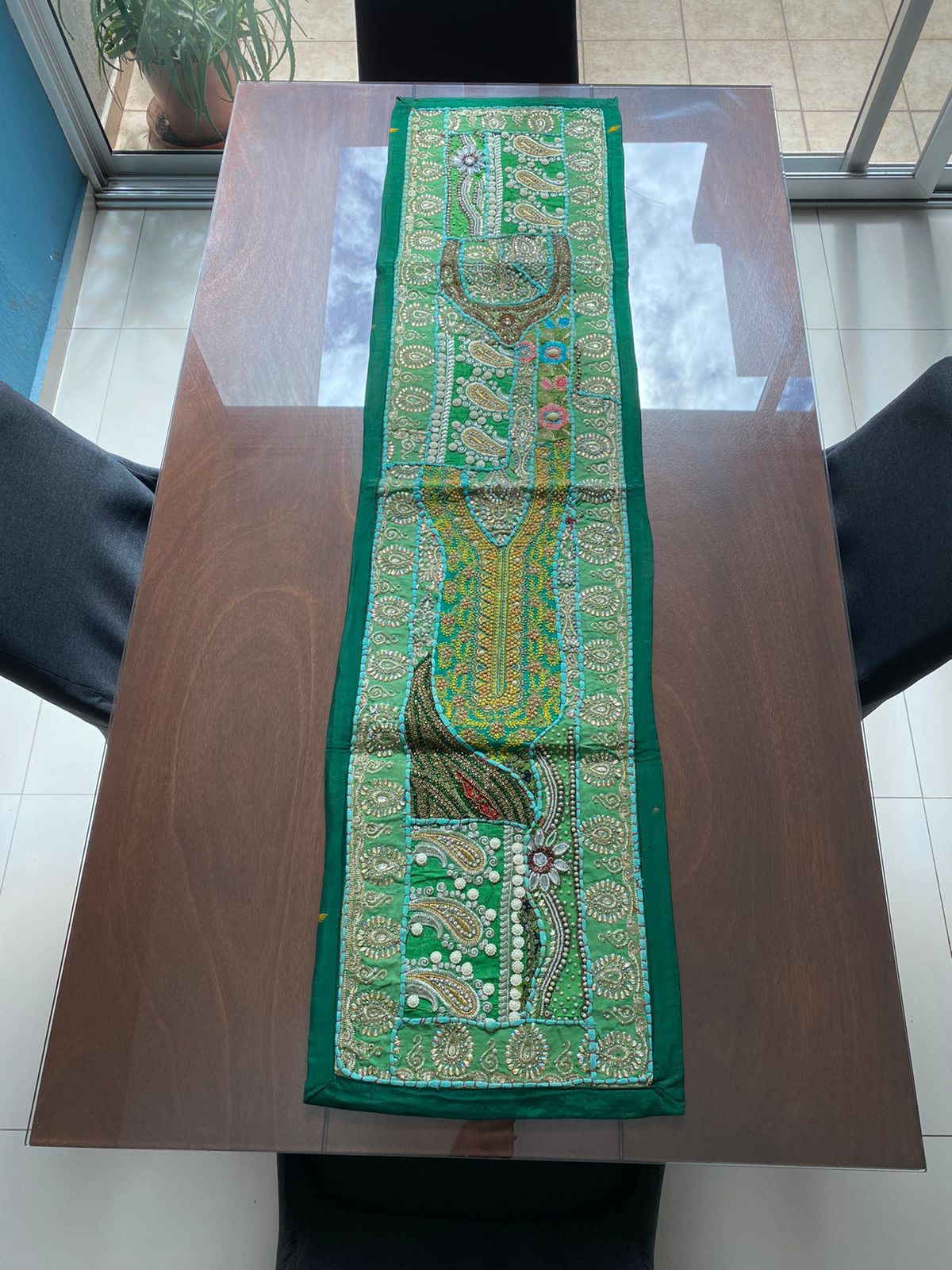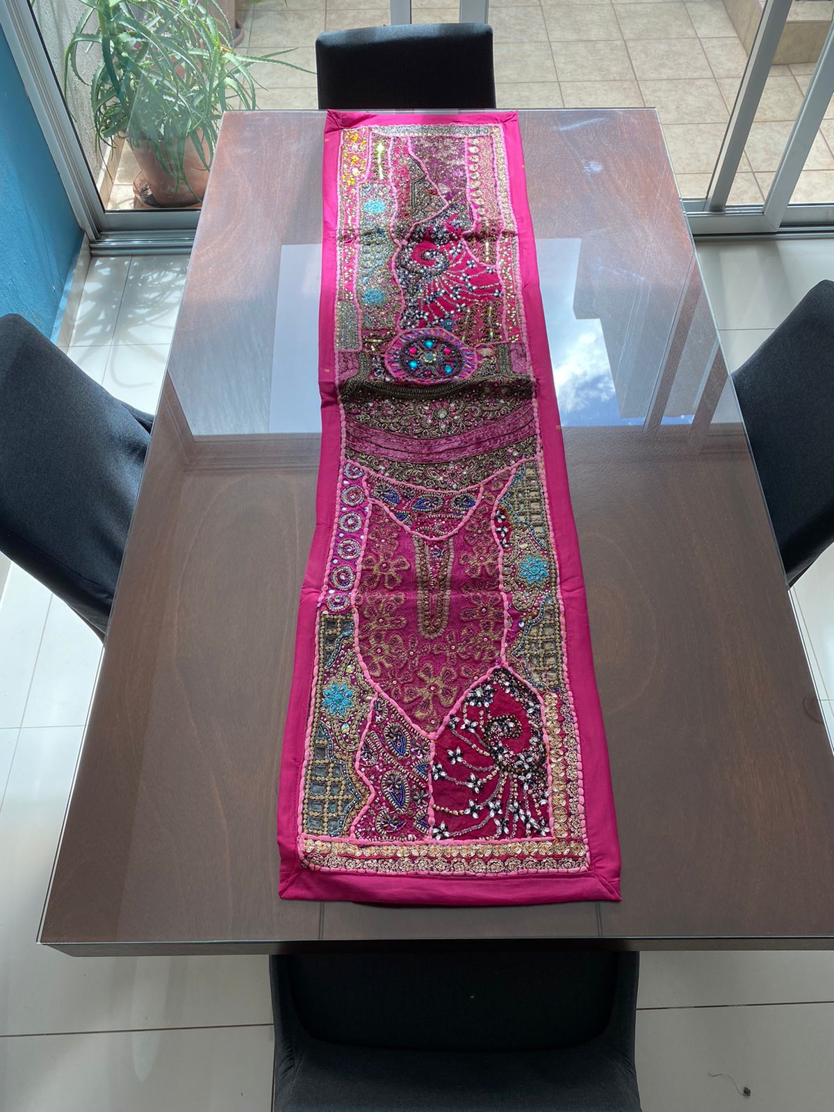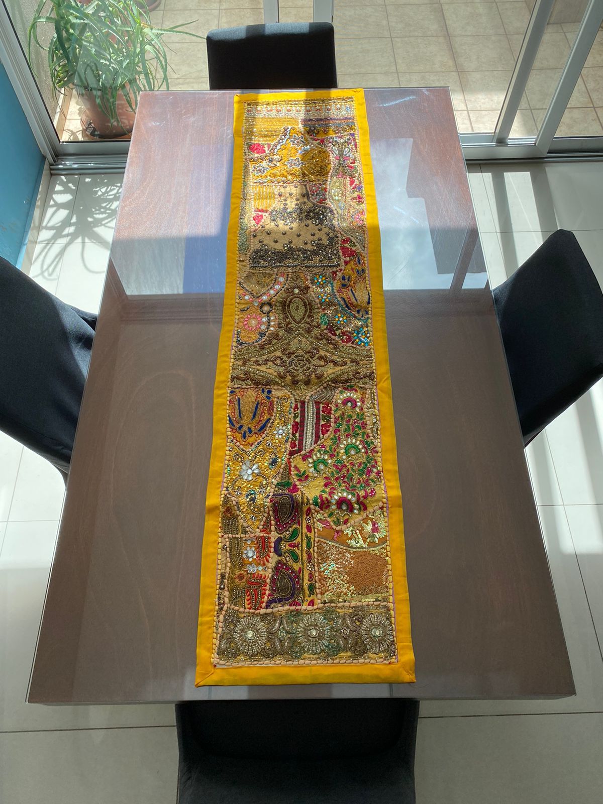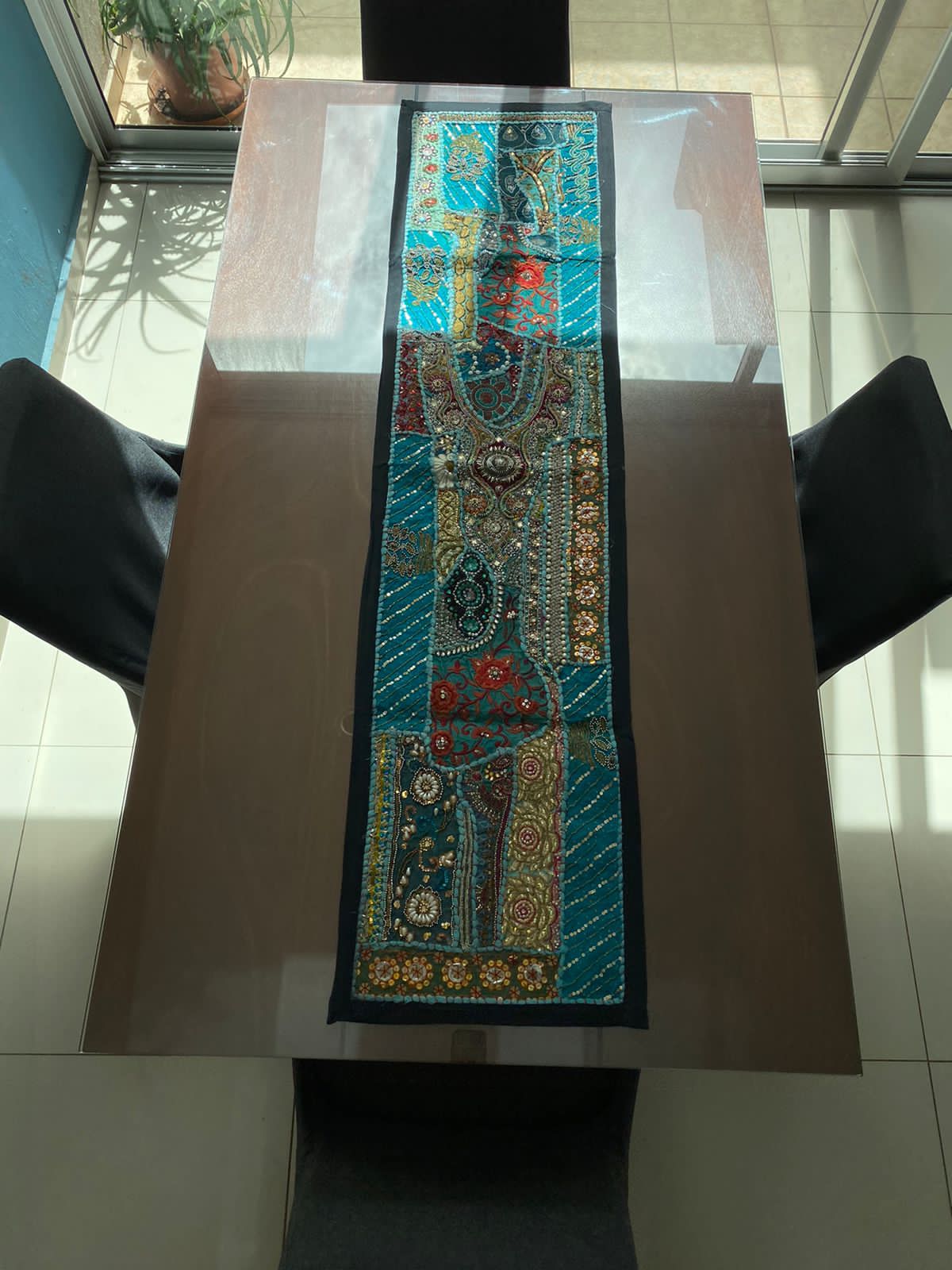 Estos camino de mesa están hechos de parches de tela vintage y bellamente fabricados por expertos artesanos en Rajasthan, India. Disponible en varios colores vibrantes e impresionantes. Ten en cuenta que como estos Caminos de mesa están hechos a mano y hechos de parches de tela vintage, el camino de mesa será enviado en el mismo color principal, pero los parches serán diferentes.