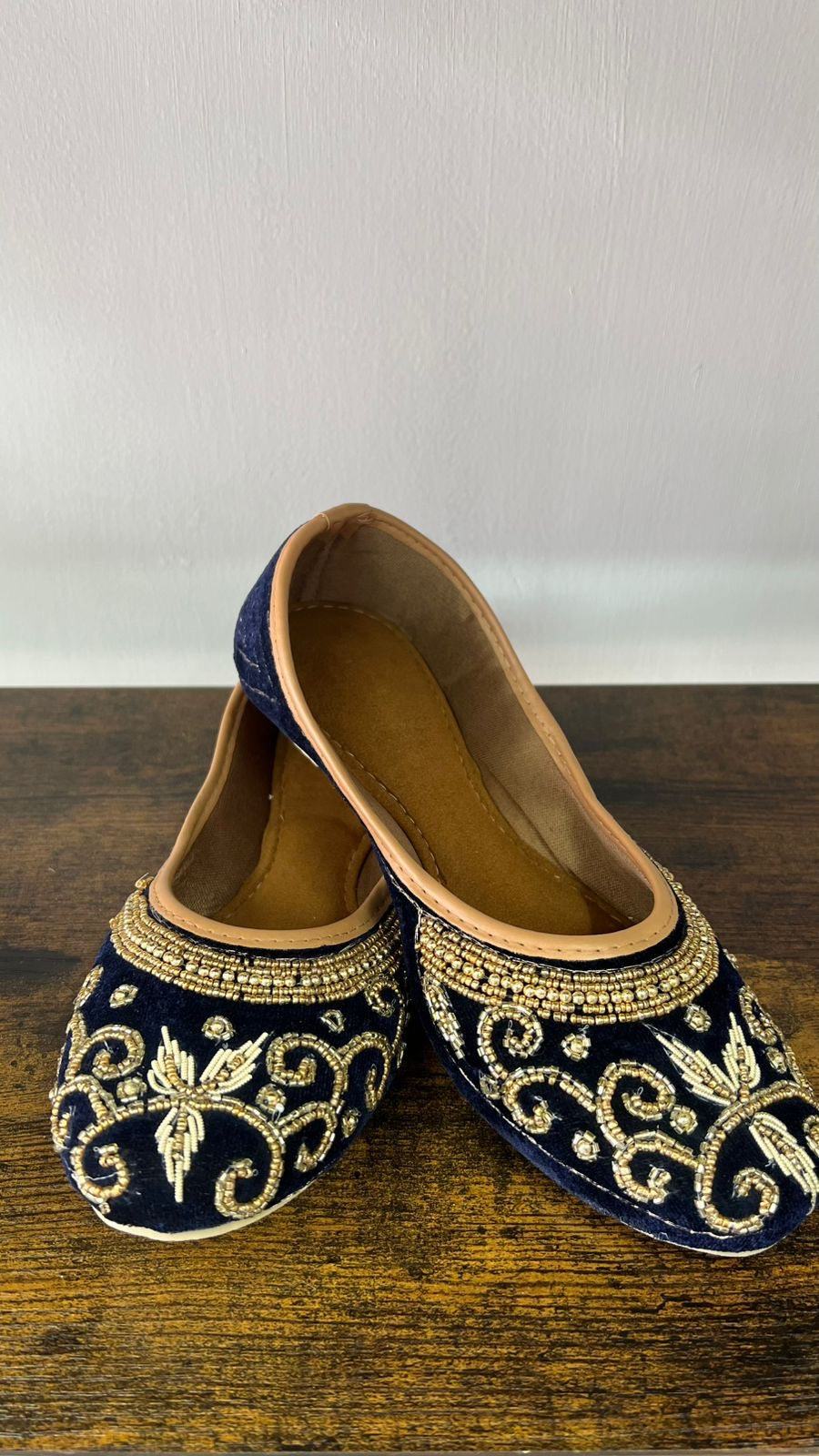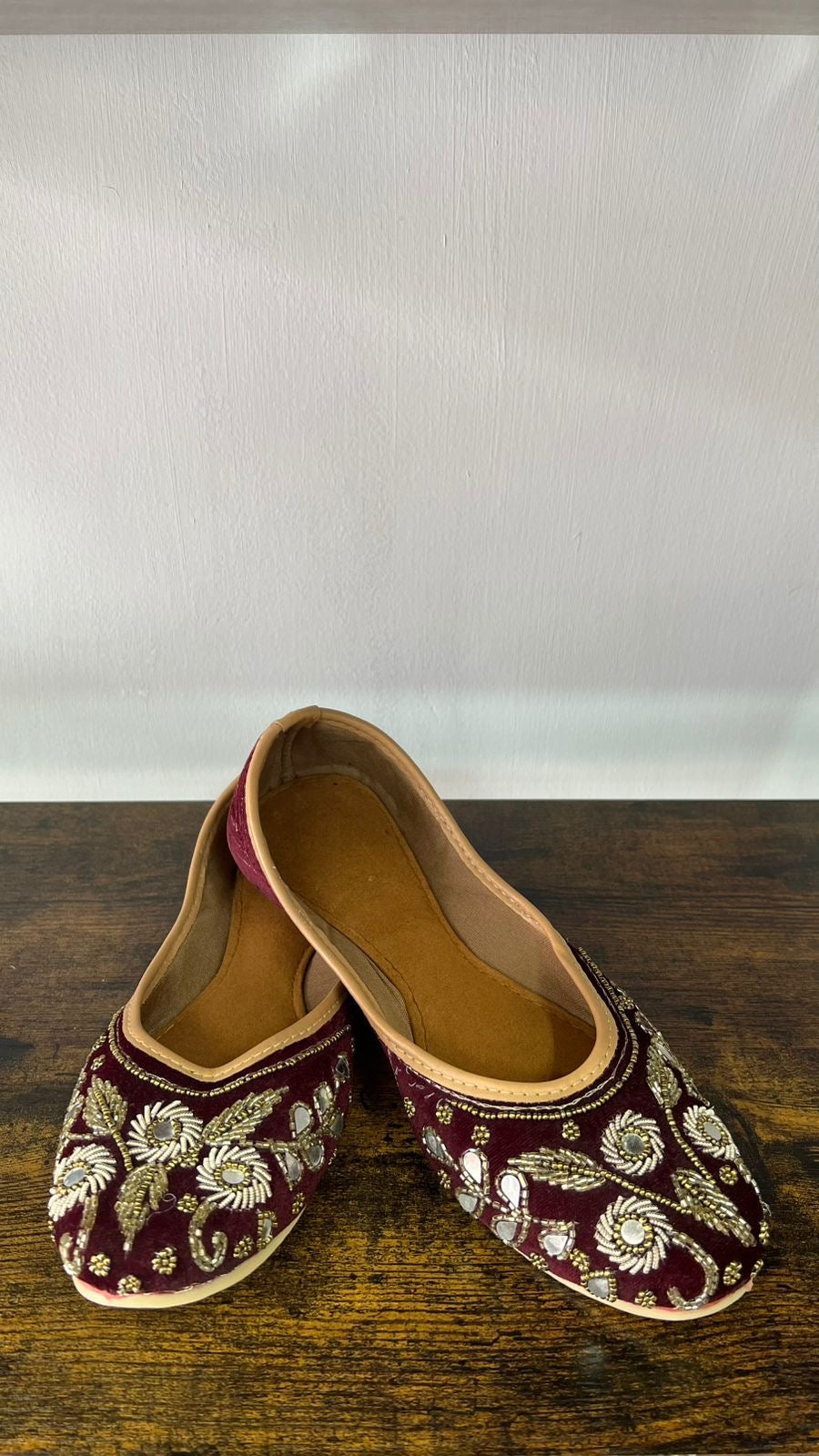Estos Jooti son zapatos tradicionales de la India para mujeres. Con su diseño elegante y auténtico, estos zapatos son perfectos para cualquier ocasión especial. Hechos a mano con materiales de alta calidad, estos zapatos brindan comodidad y estilo a partes iguales. ¡Dé un toque único a su vestuario con los Jooti para Mujeres!