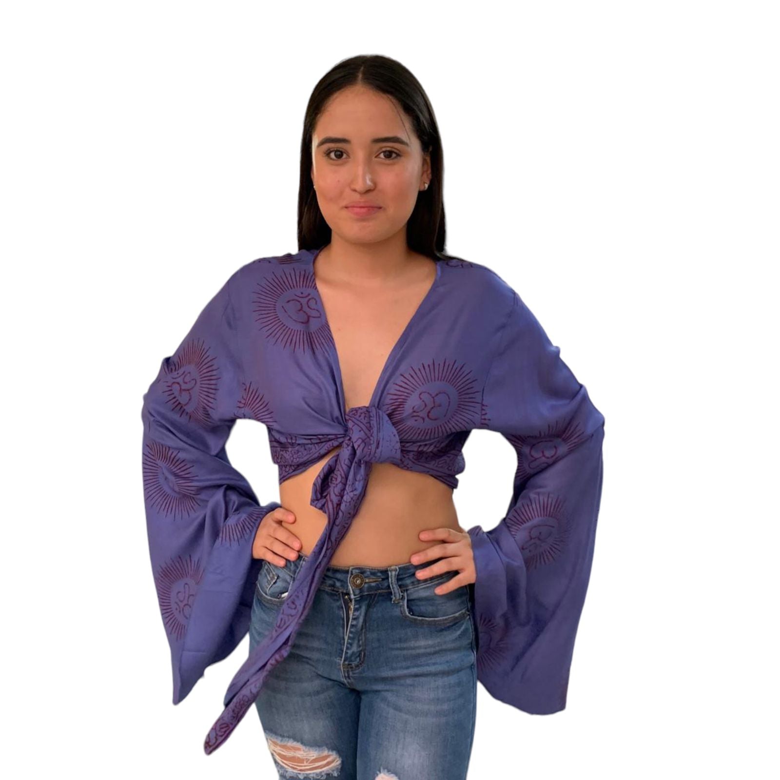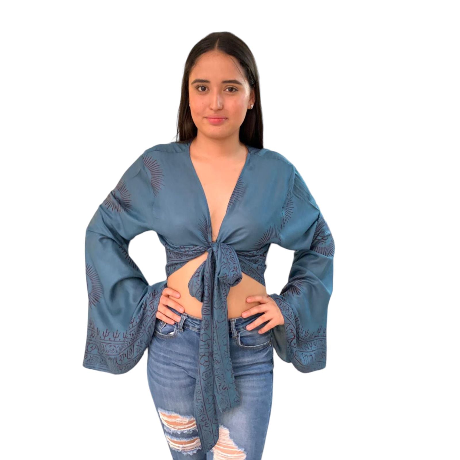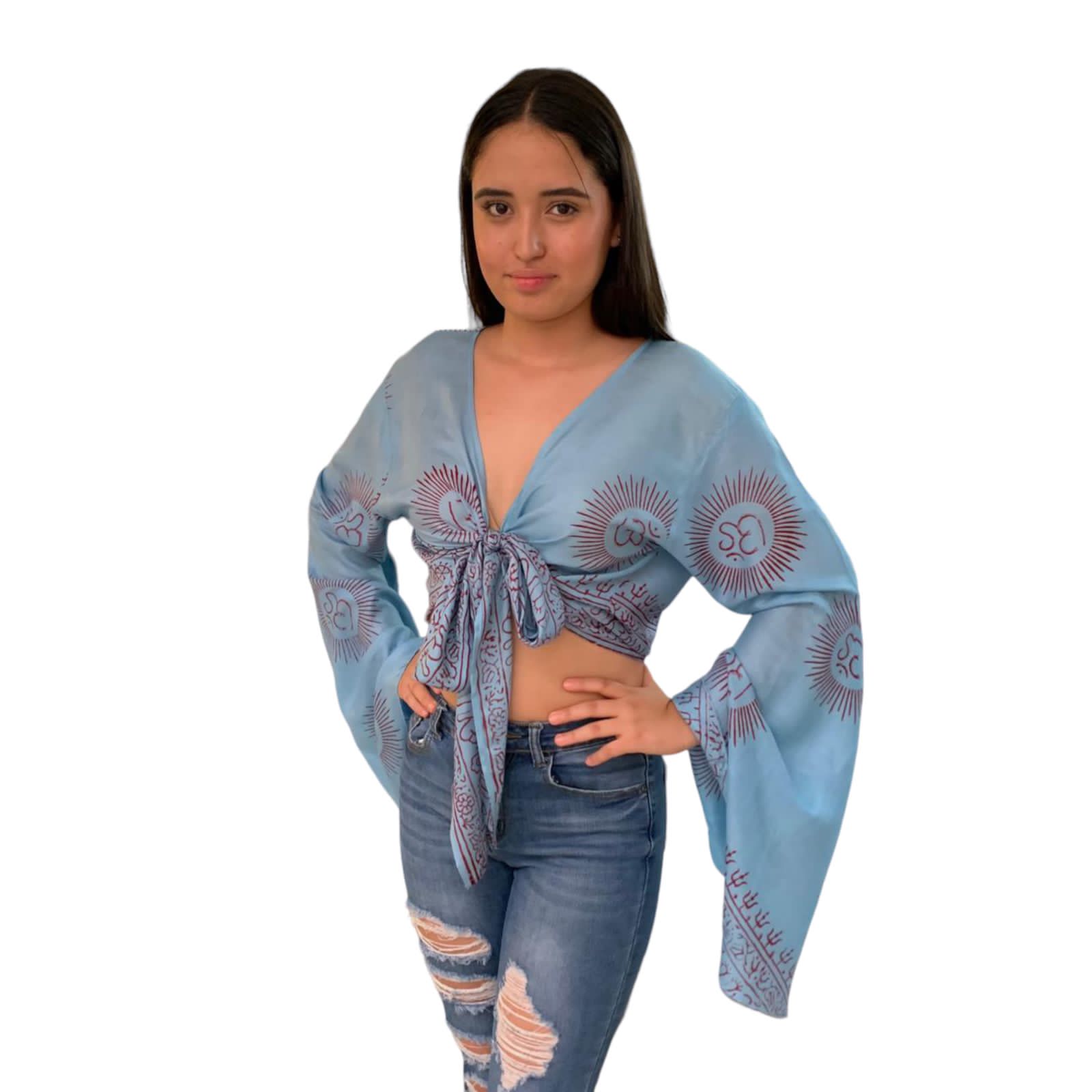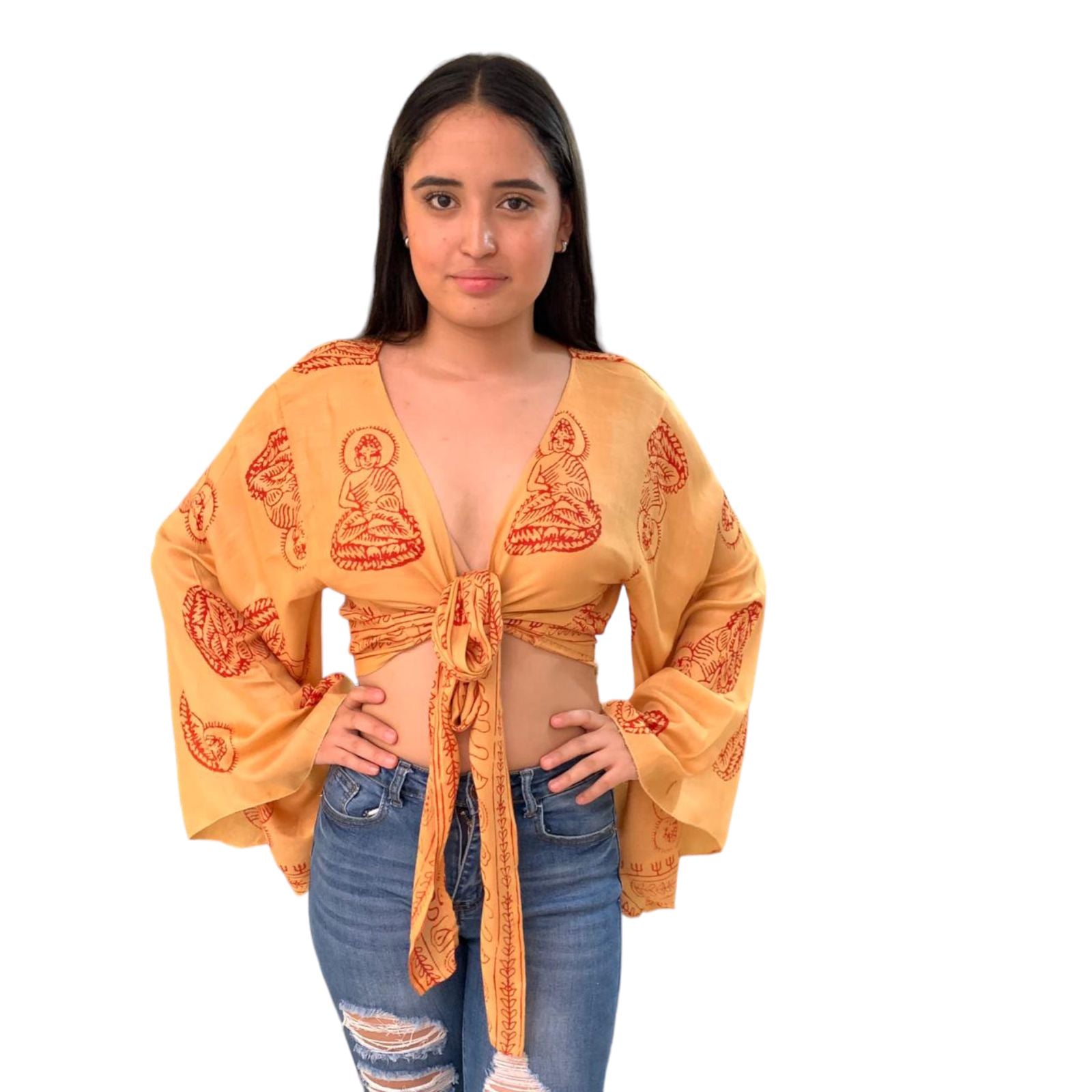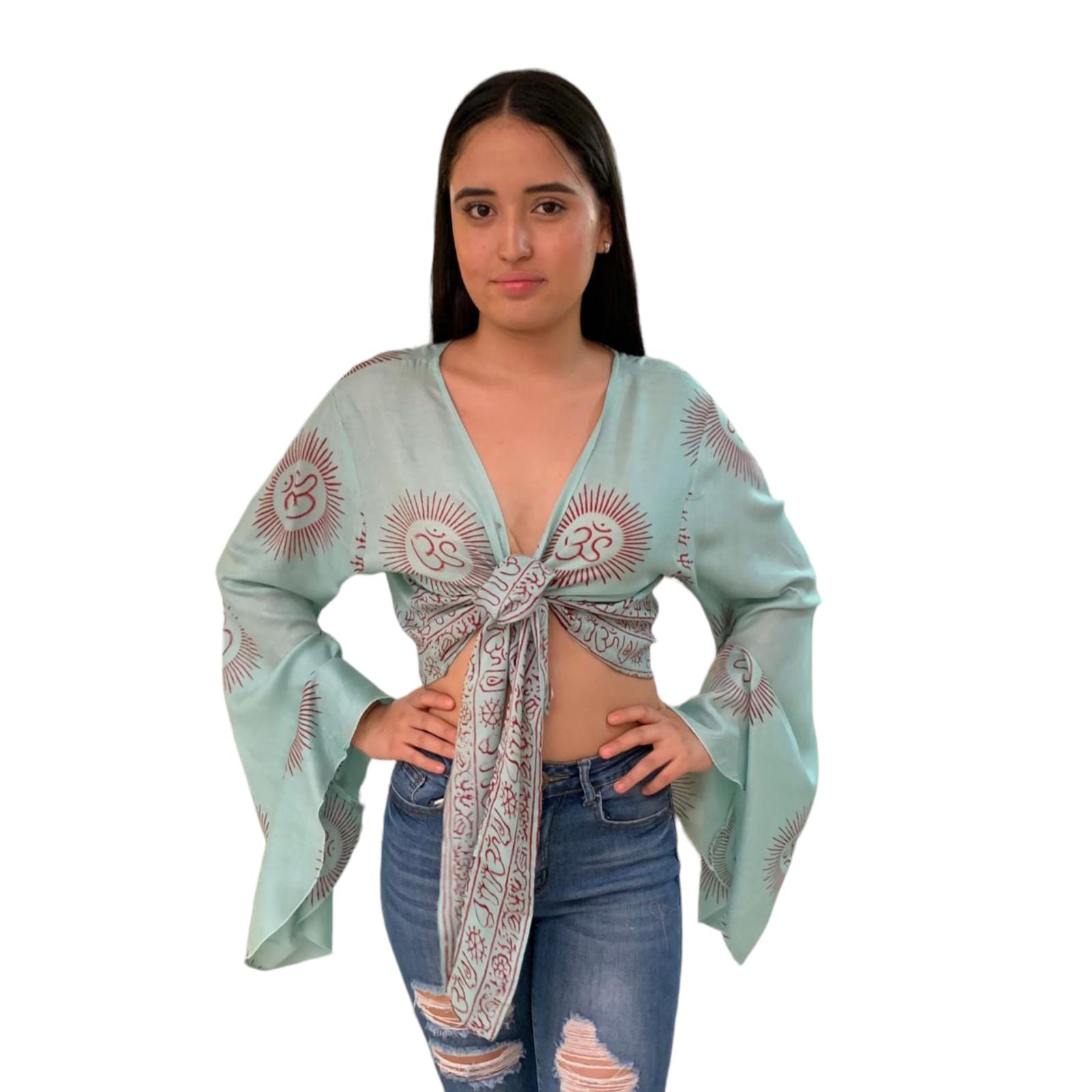 Top envolvente Hindú es una mezcla de blusas con mangas acampanadas todo hecho a mano en la India.