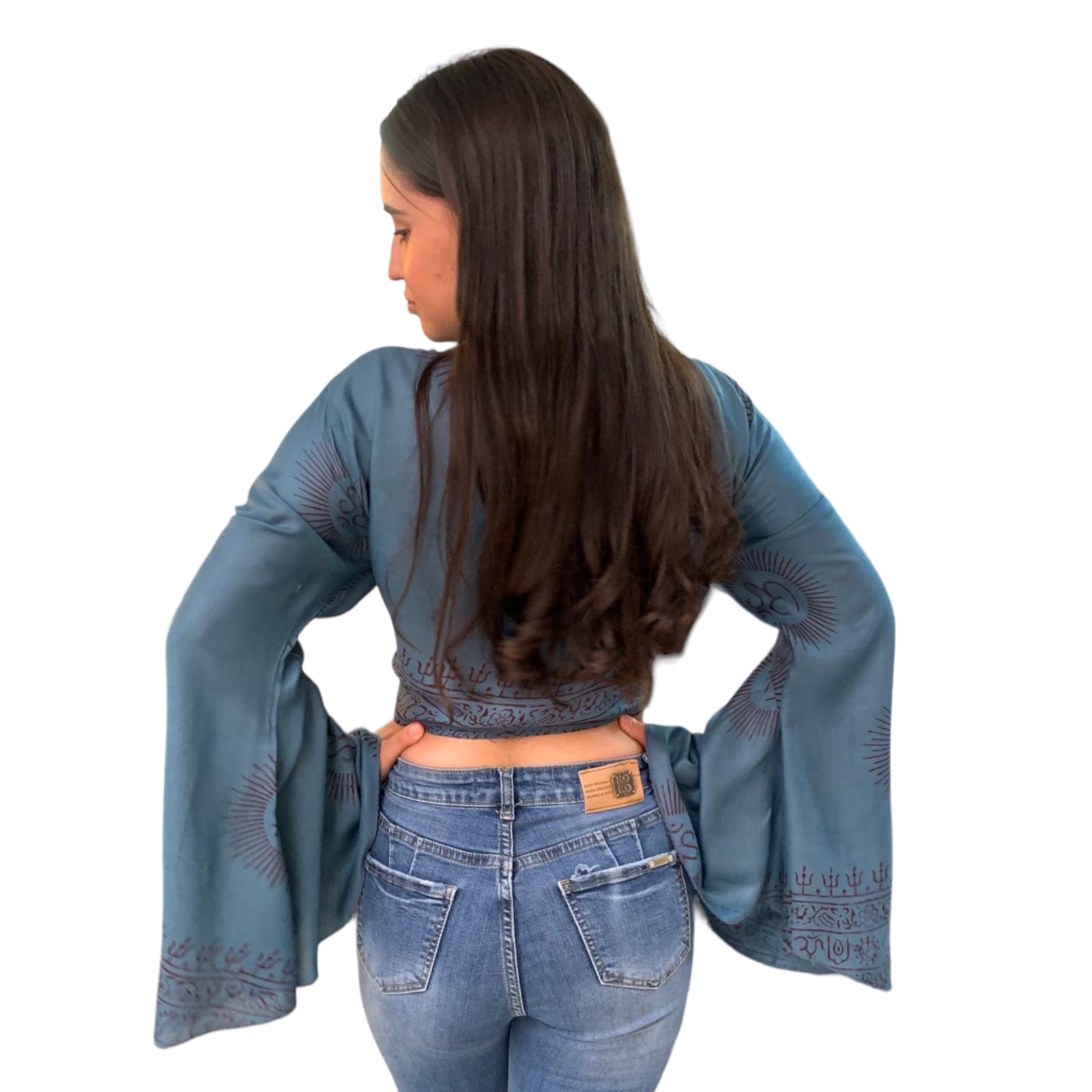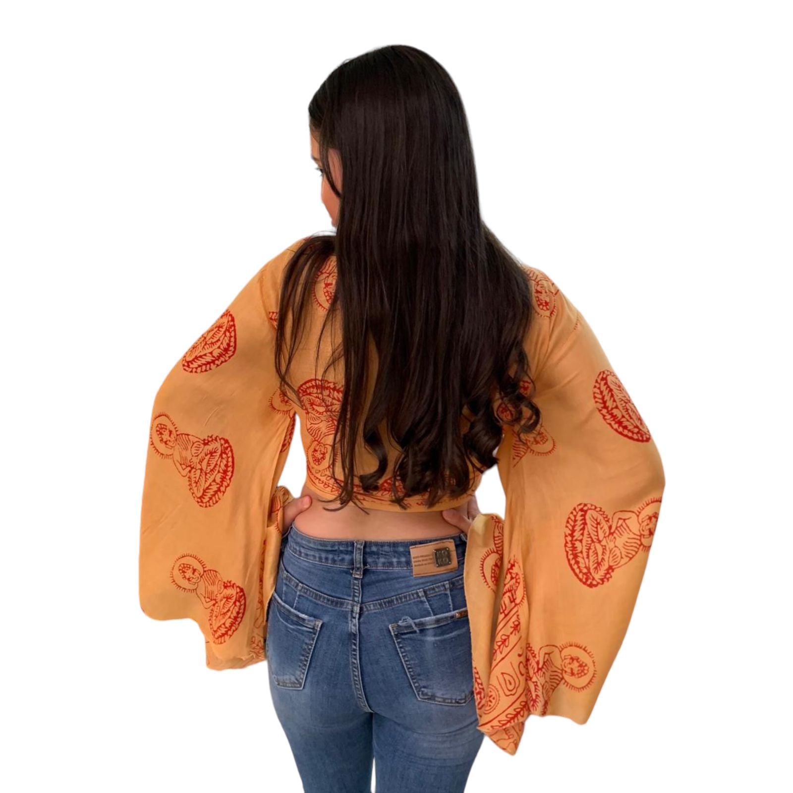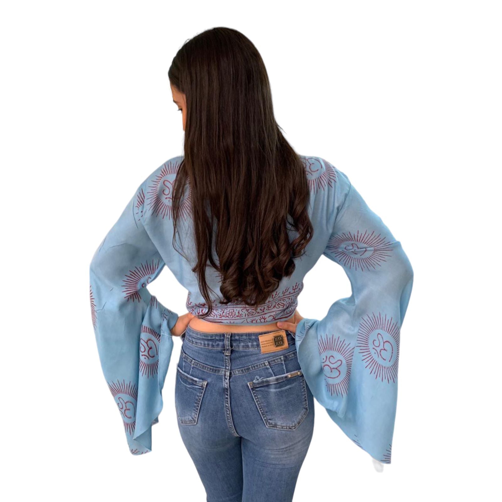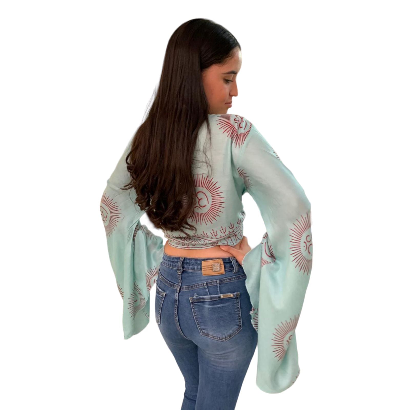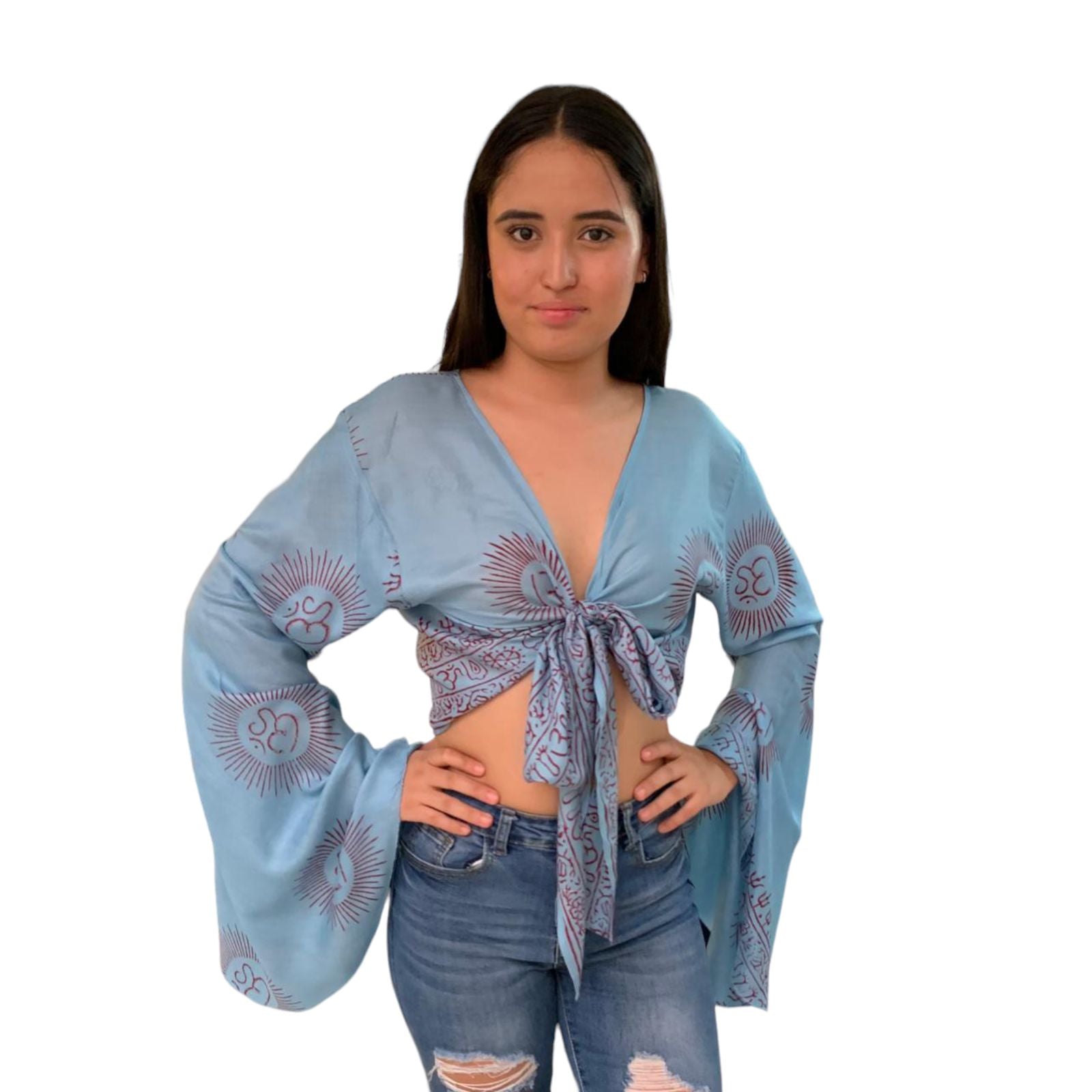 Top envolvente Hindú es una mezcla de blusas con mangas acampanadas todo hecho a mano en la India.